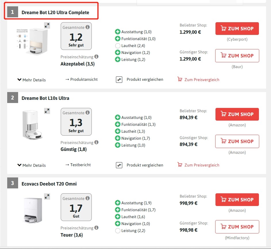 近日,德国权威科技媒体CHIP测评中心发布“最好的扫地机器人”榜单,中国智能清洁行业领导品牌追觅科技的旗舰型扫地机器人L20 Ultra,凭借创新科技力和卓越表现脱颖而出,从形态到内核跑赢一众竞品,·获得榜单第一。“总的来说,我们第一次对扫地机器人的清洁效果感到非常满意。”CHIP在对追觅扫地机器人L20 Ultra进行测试后做出如此评价。