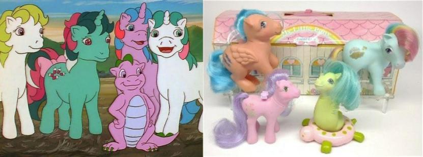 左图为80年代的小马宝莉动画,右图为G1小马宝莉玩具(图片来源于网络)